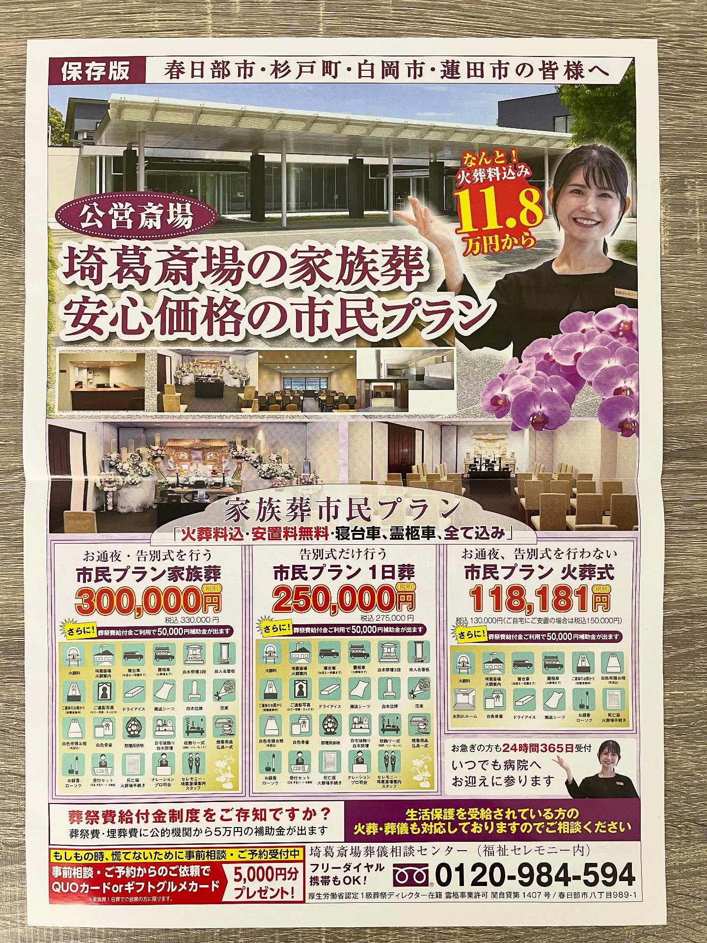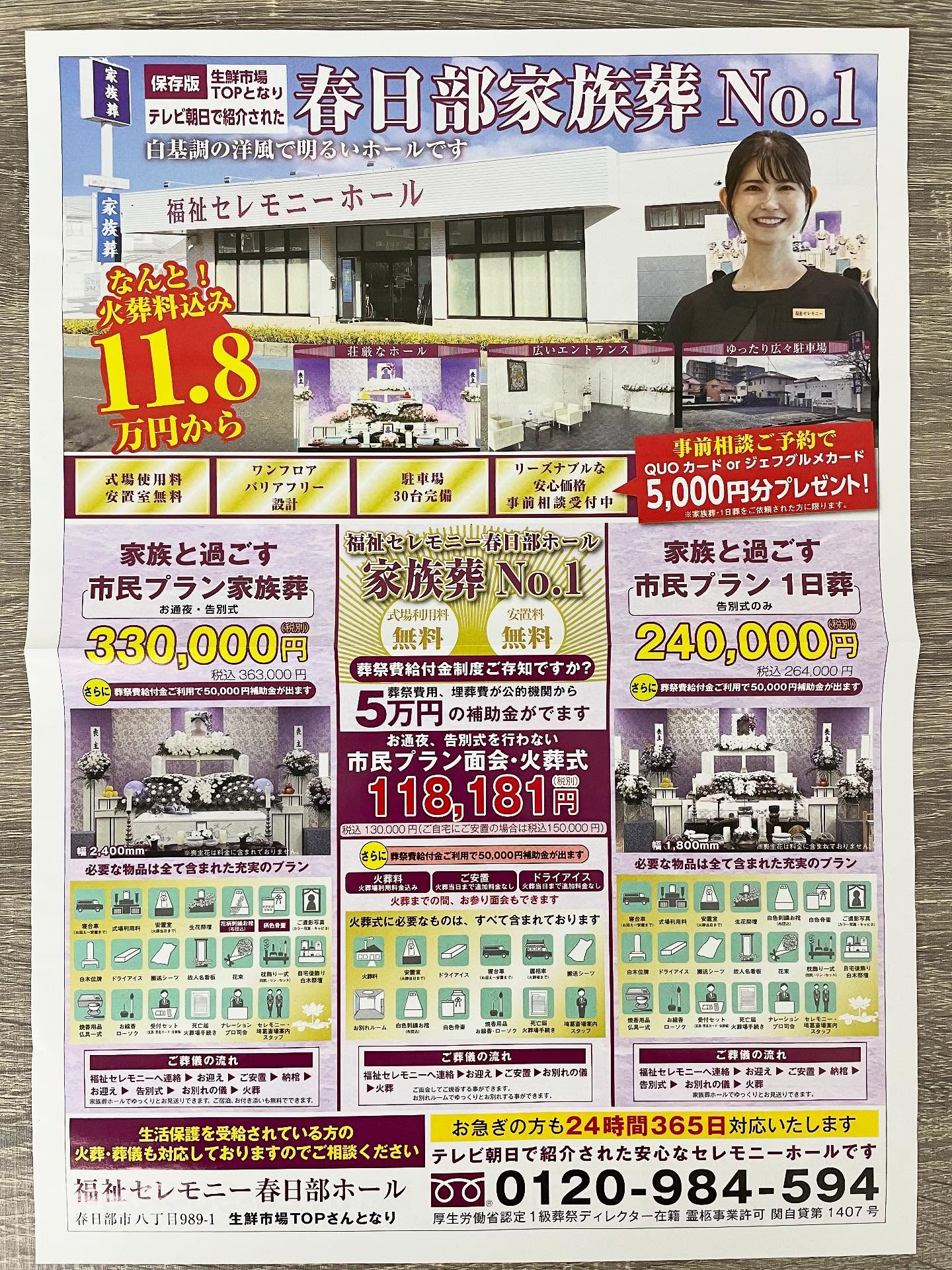 東武スカイツリーライン春日部駅東口近くの福祉セレモニー春日部ホールは、春日部市、杉戸町、蓮田市、白岡市、宮代町、越谷市、さいたま市など、埼玉県で葬儀、家族葬、一日葬、火葬式を行なう葬祭セレモニーホールです。搬送からご安置まで自社施設ですべての施行を行ない、家族葬を主に得意としております。搬送やご安置だけでも承ります。安置料が無料ですのでご安置後ゆっくりとご検討いただけます。専任の葬祭ディレクターがご家族によりそい、心のこもったご葬儀をご提案させていただきます。